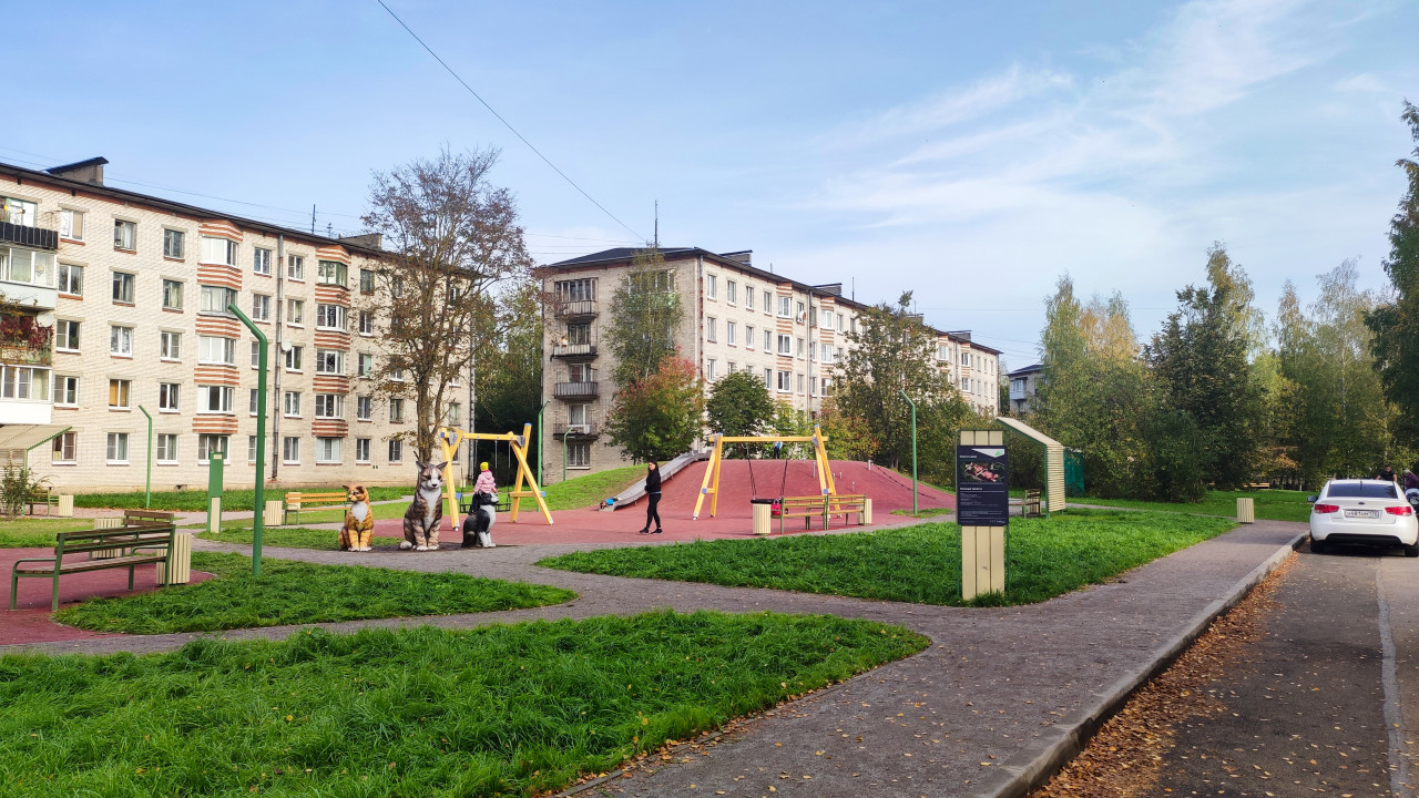 придомовая территория двор дворовая территория двор жилого дома жилой двор жилой квартал спальный район городской двор городская среда благоустройство территория около дома детская площадка жилье жилые дома дети качели горка скульптуры городская инфраструктура архитектура общественное пространство город отдых пешеходная зона озеленение благоустройство двора Ленинградская область Россия безопасность резиновое покрытие общественные зоны благоустройство города городской ландшафт семейный отдых городская территория детская зона малые архитектурные формы жилье советского периода архитектурная средаПохожие фотографии