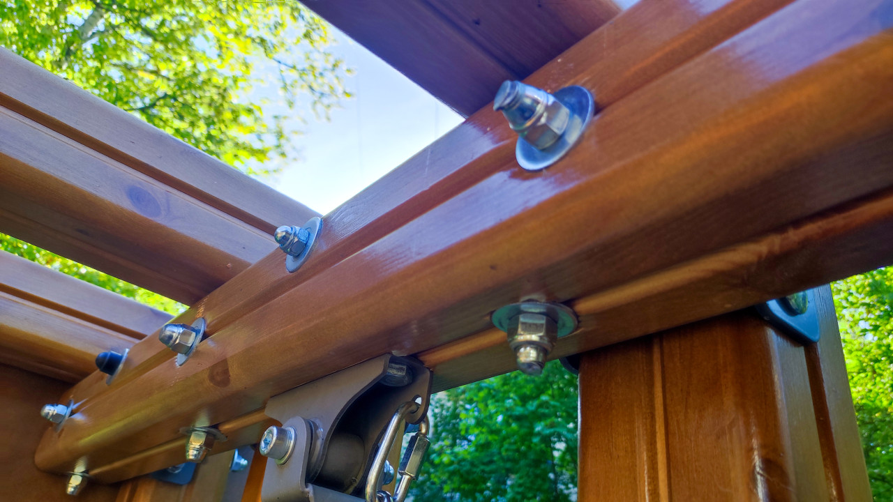 благоустройство двор оборудование урбанистика общественное пространство городская среда инфраструктура болт гайка шайба крепёж дерево конструкция монтаж инженерия балка соединение несущая конструкция архитектура подвес карабин металлический элемент пергола качели инженерное решение сборка наружное сооружение безопасность малые формы наружная конструкция проектирование контроль качества соединение дерева и металла строительство болтовое соединение деталь конструкцииПохожие фотографии