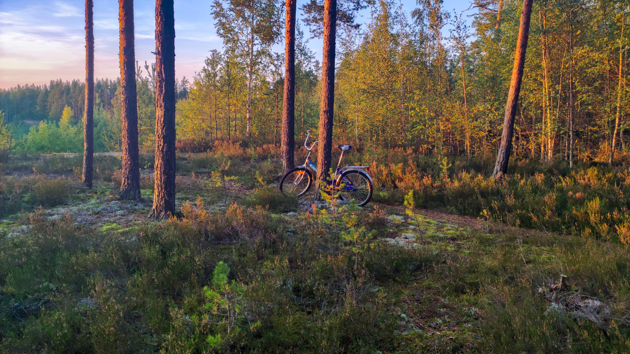лес природа осень велосипед сосны Ленинградская область вечер закат прогулка туризм активный отдых велотуризм пейзаж мох кустарники Карельский перешеек север отдых спорт хвойный лес экология путешествие фотопейзаж природная зона велосипедист прогулка на природе транспорт отдых на природеПохожие фотографии