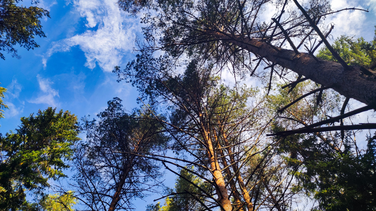 лес природа осень сосны небо деревья кроны Ленинградская область тайга свет облака север экология пейзаж лесная фотография дневной свет Карельский перешеек природа России фотопейзаж растительность хвойный лес свежий воздух туризм лето северный лес деревья вверх ландшафт солнечный светПохожие фотографии