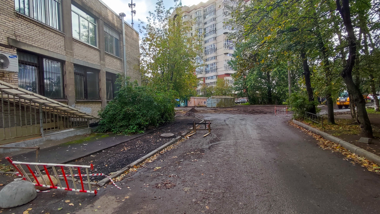 благоустройство благоустройство территории стройплощадка строительная площадка строительные работы строительство строительный участок дорожные работы кирпичное здание ремонт асфальт строительные ограждения ЖКХ городская инфраструктура жилой квартал инженерные сети благоустройство двора осень листва тротуар бордюр реконструкция временные барьеры контроль качества Санкт Петербург городская среда дворовая территория инженерия дорожное покрытие ремонт дорог строительные нормы рабочие техника инфраструктурные проекты подготовка под асфальтПохожие фотографии