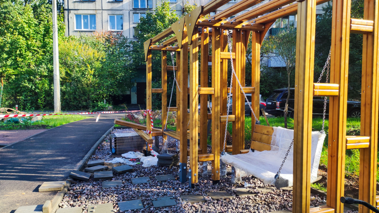 благоустройство благоустройство территории стройплощадка строительная площадка строительные работы строительство строительный участок качели деревянные конструкции монтаж малые архитектурные формы двор скамейка упаковка строительные материалы установка городская среда придомовая зона безопасность монтажная площадка общественное пространство ограждение сигнальная лента детская площадка оборудование архитектура деревянная структура проект благоустройства ремонт инженерные работы элементы двора отдых дизайн городское благоустройствоПохожие фотографии