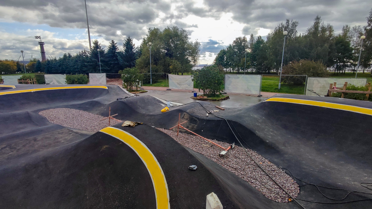 благоустройство благоустройство территории стройплощадка строительная площадка строительные работы строительство строительный участок памп трек асфальт разметка завершение работ спортивная площадка велопарк урбанизм спортобъект уличный спорт инженерия инфраструктура гравий ландшафт парк дорожные работы монтаж Санкт Петербург покрытие архитектура урбанистика катание общественное пространство реконструкция контроль качества городская среда освещение ограждение проектПохожие фотографии
