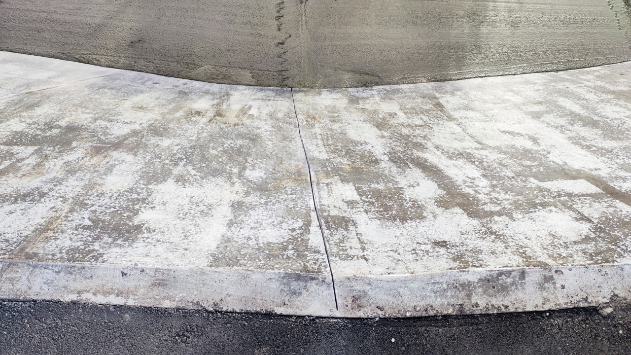 На фото видна поверхность бетонной площадки с ровно прорезанным температурным швом, разделяющим участки монолитного покрытия. Это часть спортивной зоны или дорожного элемента, выполненного с соблюдением строительных норм. Снимок демонстрирует технологию предотвращения трещинообразования при эксплуатации бетона и может использоваться в технических отчётах, проектной документации и визуализациях строительных решений.