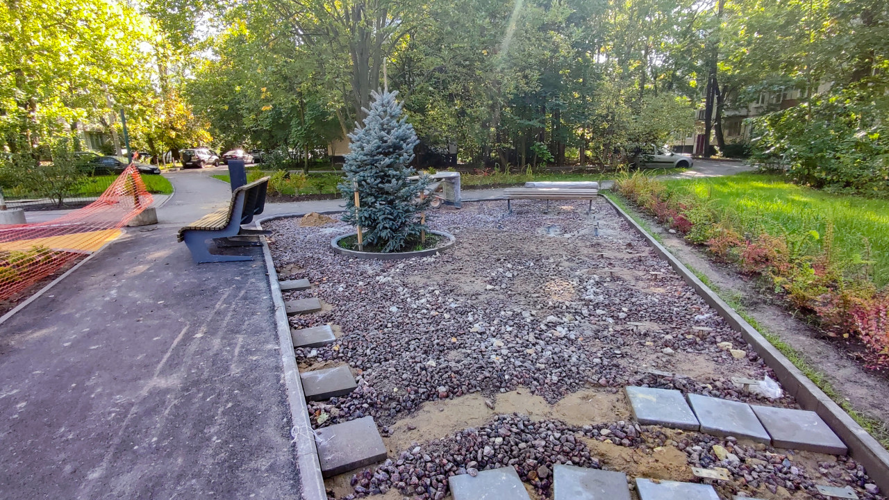 благоустройство благоустройство территории стройплощадка строительная площадка строительные работы строительство строительный участок дорожки скамейки гравий плитка посадка ель тротуар малые архитектурные формы городской дизайн урбанистика благоустроенный двор парковая зона общественное пространство Россия Санкт Петербург муниципальный проект благоустройство двора озеленение осень экология комфортная среда ландшафтный дизайн инфраструктура элементы благоустройства работы территория чистотаПохожие фотографии