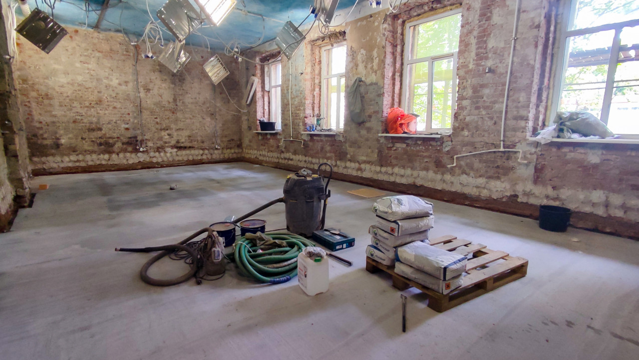Подготовка пола и стен к реставрационным работам в кирпичном здании