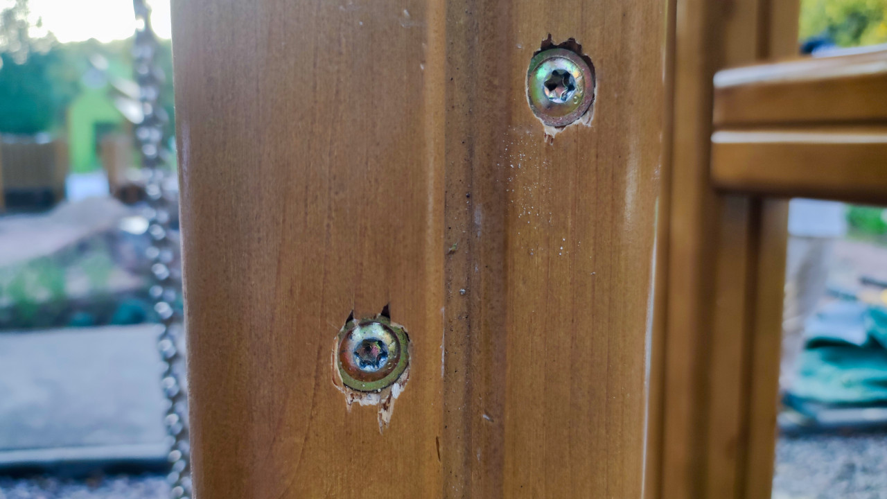 Повреждение древесины в месте крепления саморезов перголы