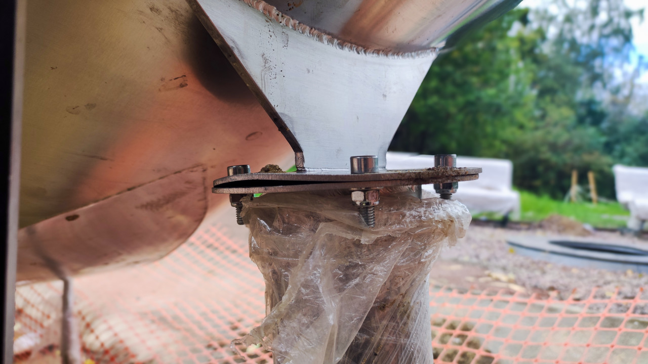 Крепление нижней части деревянных стоек перголы в грунтовом основании