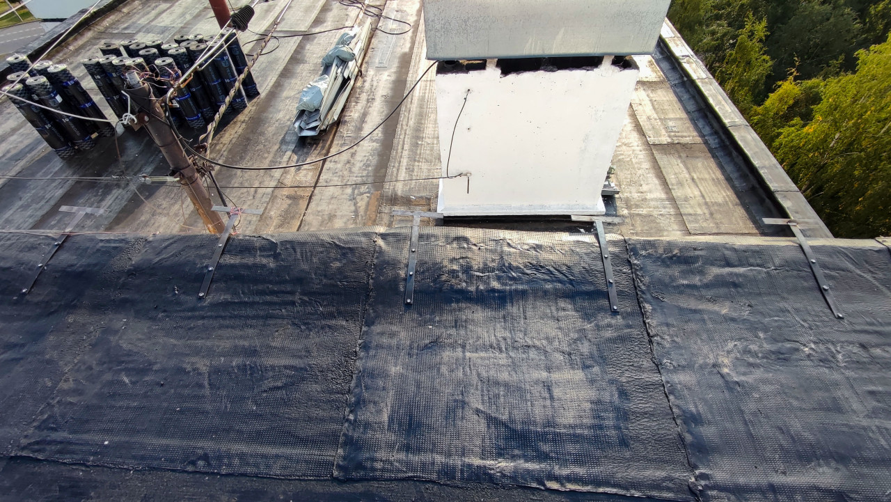 Укладка гидроизоляции и ремонт кровельного покрытия здания