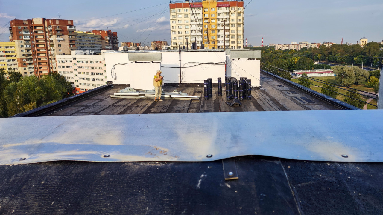 крыша ремонт крыши крыша здания износ кровельные работы ремонт кровли повреждения крыши кровля кровельное покрытие крыша дома плоская крыша парапет нащельник рулонное покрытие битум гидроизоляция строительные работы осмотр кровли человек на крыше жилой дом городская застройка строительная экспертиза техобследование инженерные работы монтаж строительный процесс эксплуатация зданий архитектура инженерные сети материалы защита от влаги город строительство обследованиеПохожие фотографии