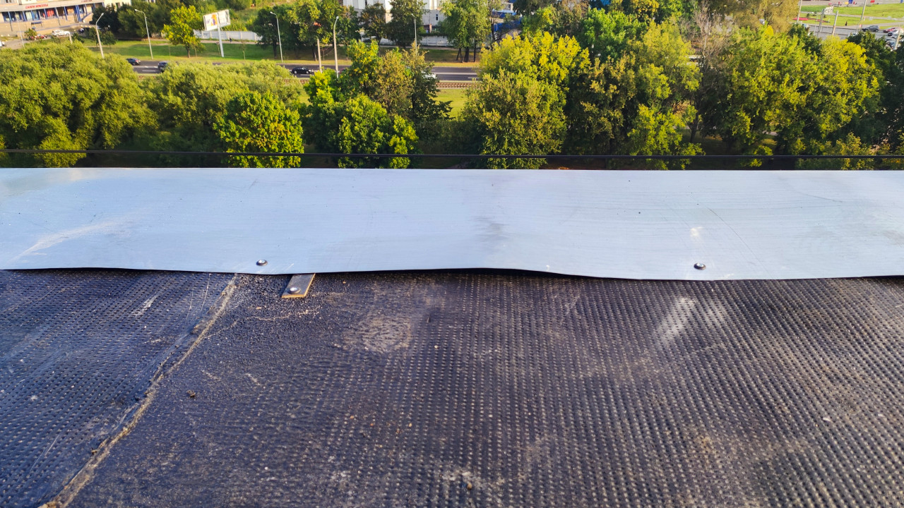 Металлический нащельник на парапете кровли с битумным покрытием