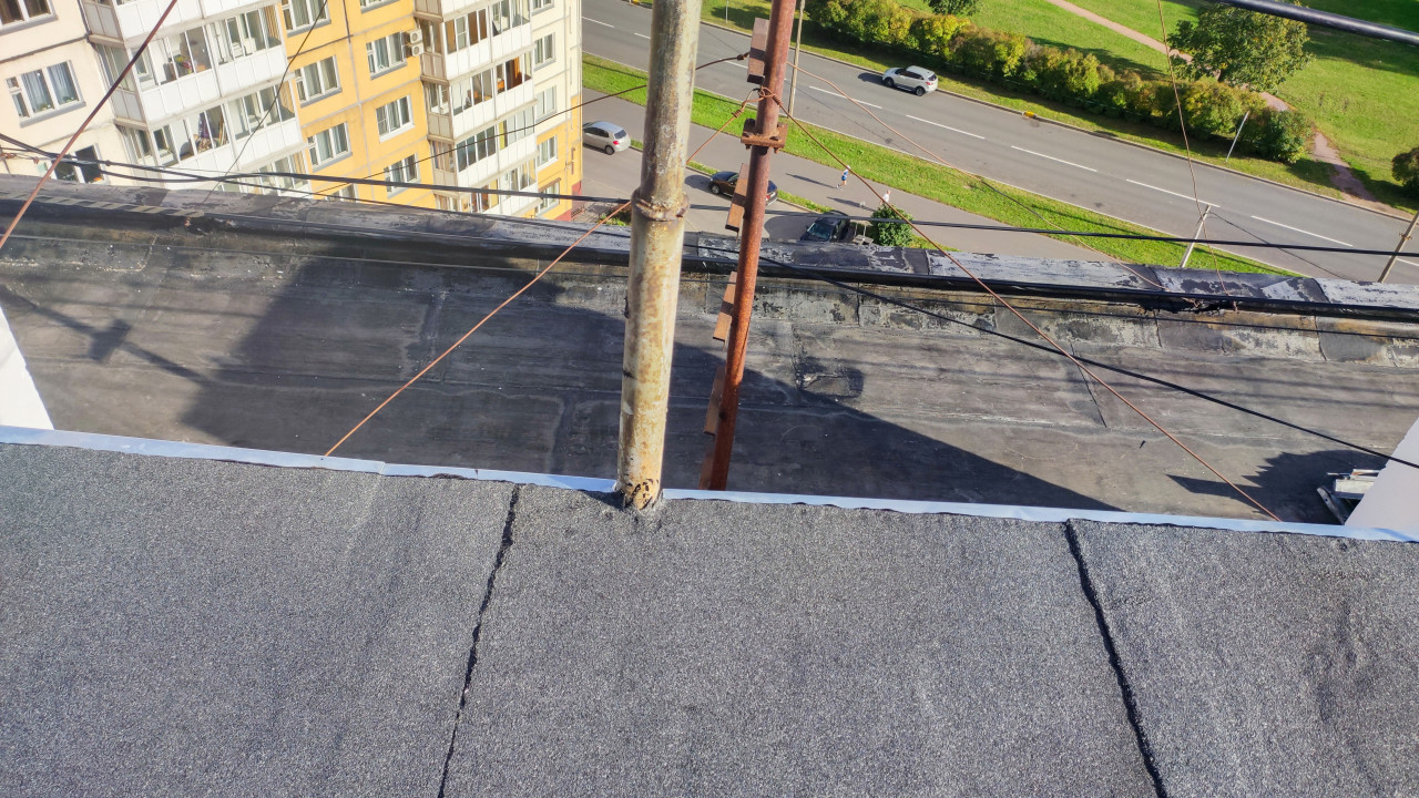 крыша ремонт крыши крыша здания износ кровельные работы ремонт кровли повреждения крыши кровля кровельное покрытие крыша дома стойка металлическая труба узел прохода гидроизоляция герметизация битумная мастика рулонная кровля инженерные коммуникации монтаж кровли строительная экспертиза промышленная кровля битумная изоляция изоляция строительные технологии визуальный осмотр гидроизоляция вводов строительный контроль монтаж стройка инженерные сетиПохожие фотографии