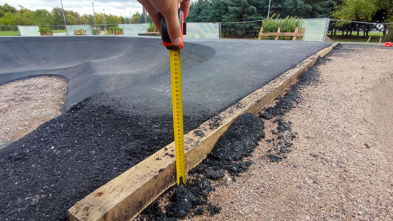 Измерение высоты слоя асфальта на краю памп-трека