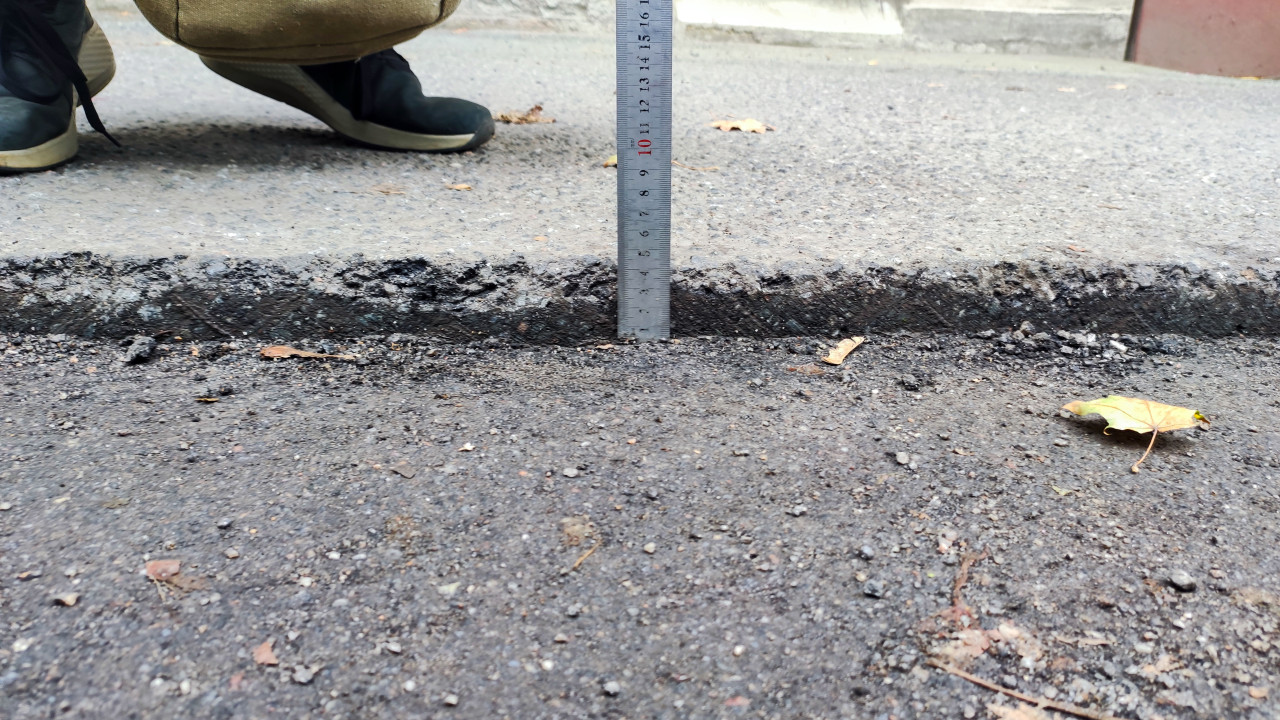 Контроль толщины слоя асфальта с использованием металлической линейки
