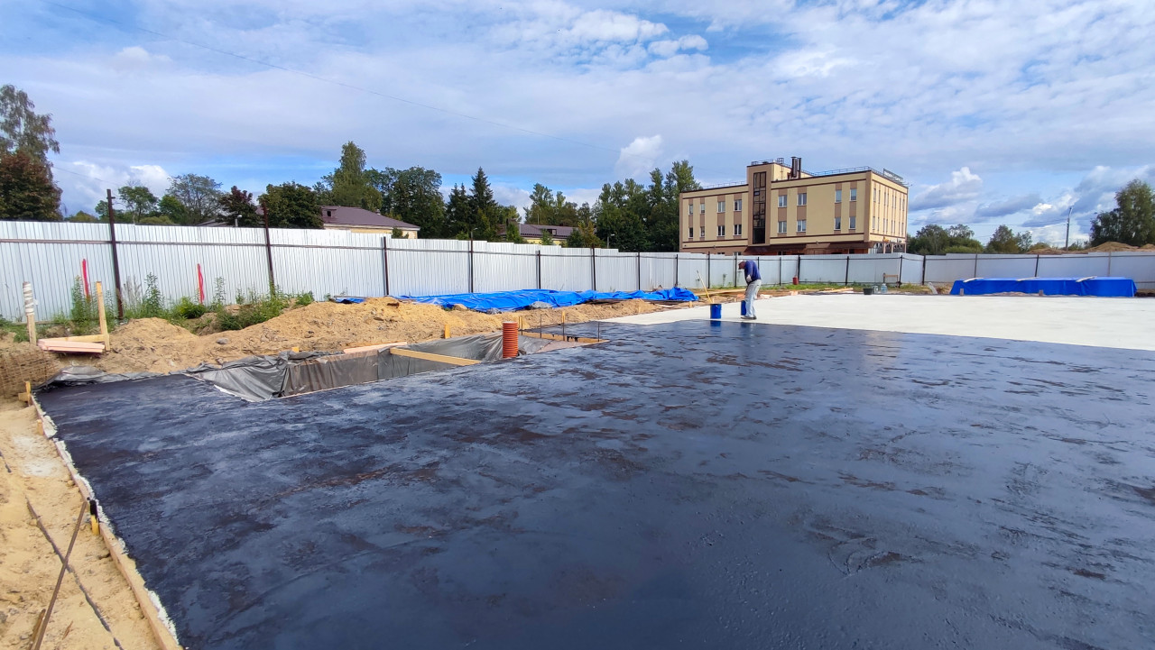 строительство фундамент строительная площадка гидроизоляция битум бетон рабочий мастика инженерные работы опалубка строительные материалы строительство зданий защита от влаги технология нанесения изоляция строительная техника строительный процесс строительные этапы инженерные системы монолитный бетон частное строительство подрядчик Россия строительство фундамента строительные решения архитектурное проектированиеПохожие фотографии