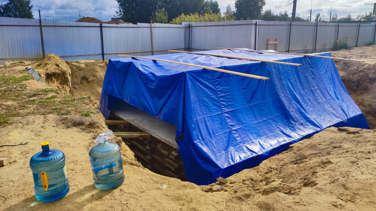 строительство фундамент строительная площадка бетон тент защита инженерные работы уход за бетоном бутыли вода строительные материалы опалубка армирование подрядчик бетонная плита строительные технологии временное укрытие строительные процессы Россия строительная техника инженерия строительные этапы строительный контроль монолит дренаж архитектураПохожие фотографии