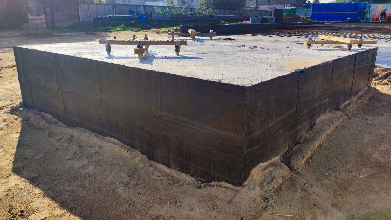 строительство фундамент строительная площадка монолит гидроизоляция битум защита от влаги бетонное основание инженерные сооружения строительная технология песчаная подушка наружные работы изоляционные материалы строительный процесс строительные конструкции контроль качества строительная экспертиза устройство фундамента Россия бетон строительные этапы подрядчик строительный контроль строительные нормы инженерная подготовка утепление основания влагозащита строительные материалы гидроизоляционные работы строительные фотографии документирование работПохожие фотографии