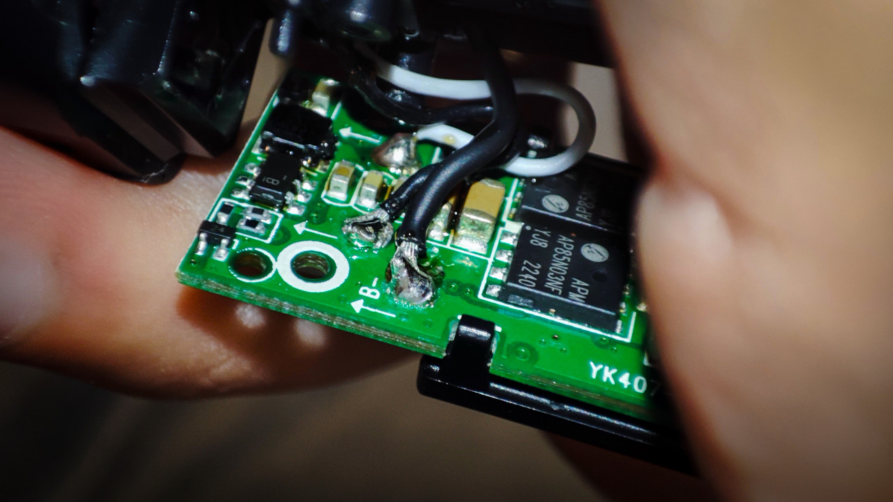 Электронная плата с поврежденными проводами