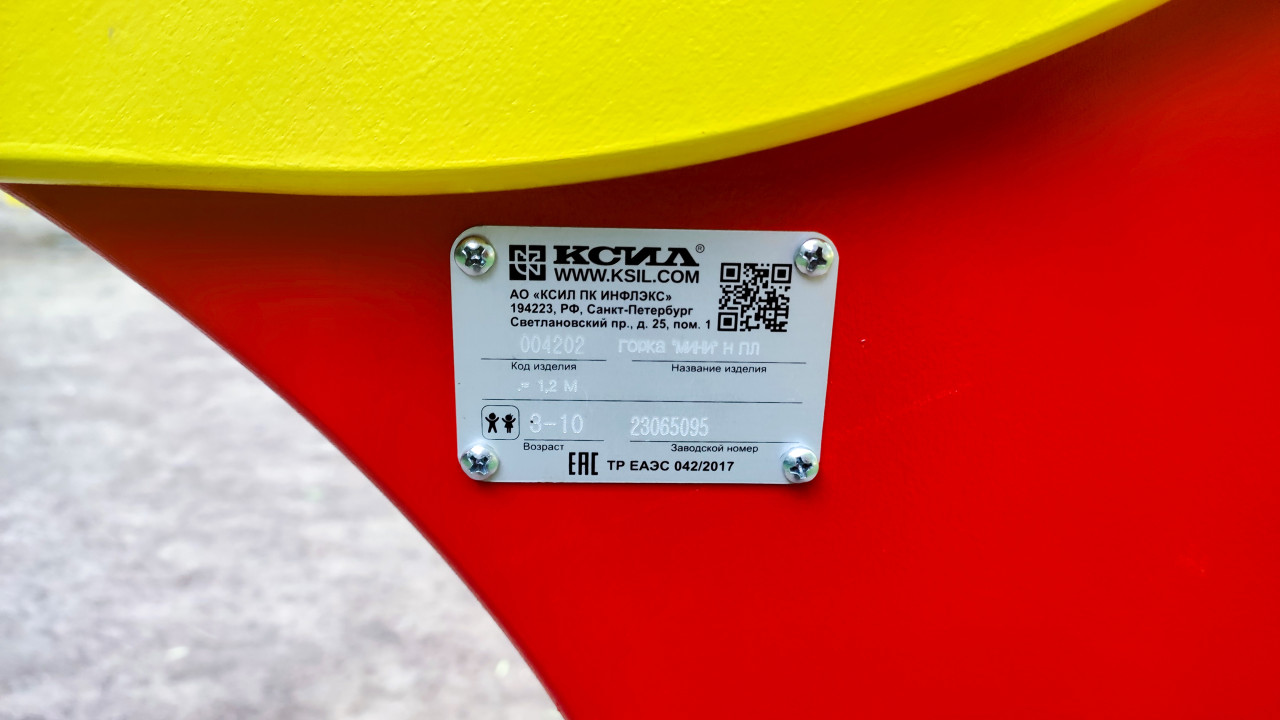 табличка заводская табличка КСИЛ детская горка игровое оборудование сертификация безопасность стандарт производитель заводской номер маркировка документация промышленность Россия Санкт Петербург игровая площадка дети возрастное ограничение EAC ТР ЕАЭС конструкция яркие цвета ГОСТ информация качествоПохожие фотографии