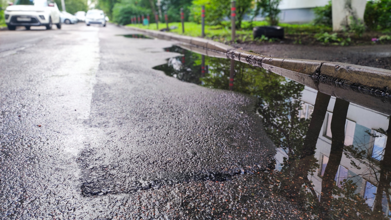 придомовая территория двор дворовая территория двор жилого дома жилой двор жилой квартал спальный район городской двор городская среда благоустройство территория около дома асфальт лужа дождь бордюр отражение деревья жилой дом фасад ограничительные столбы инженерные проблемы дренаж вода дорожное покрытие придомовой участок осадки дождливая погода контроль состояния инженерные сети обследование дорожные работы придомовая дорогаПохожие фотографии