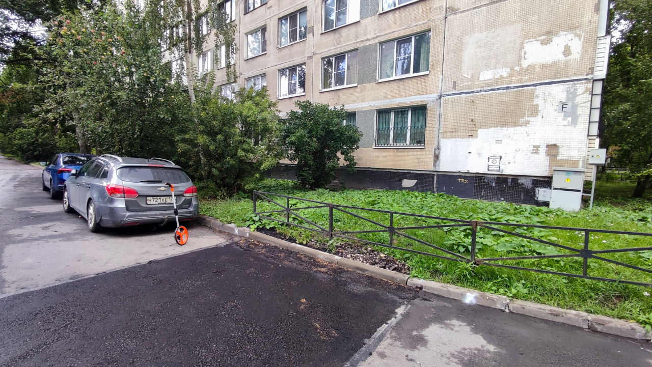 придомовая территория двор дворовая территория двор жилого дома жилой двор жилой квартал спальный район городской двор городская среда благоустройство территория около дома жилой дом фасад многоквартирный дом советская застройка плитка облупившаяся плитка автомобили припаркованные машины ограждение зелень кустарники деревья асфальт ремонт транспорт архитектура здание советская архитектура дом 20 века повседневностьПохожие фотографии