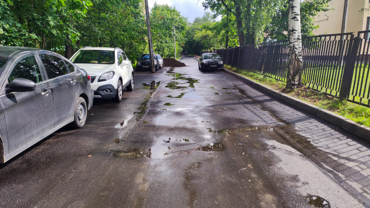 придомовая территория двор дворовая территория двор жилого дома жилой двор жилой квартал спальный район городской двор городская среда благоустройство территория около дома автомобили проезжая часть лужи дождь асфальт дорожное покрытие жилой дом забор деревья зелень припаркованные машины дождливая погода вода асфальтирование транспорт повседневность дорожные условия ремонт дороги придомовая дорога погода осадки городской пейзажПохожие фотографии