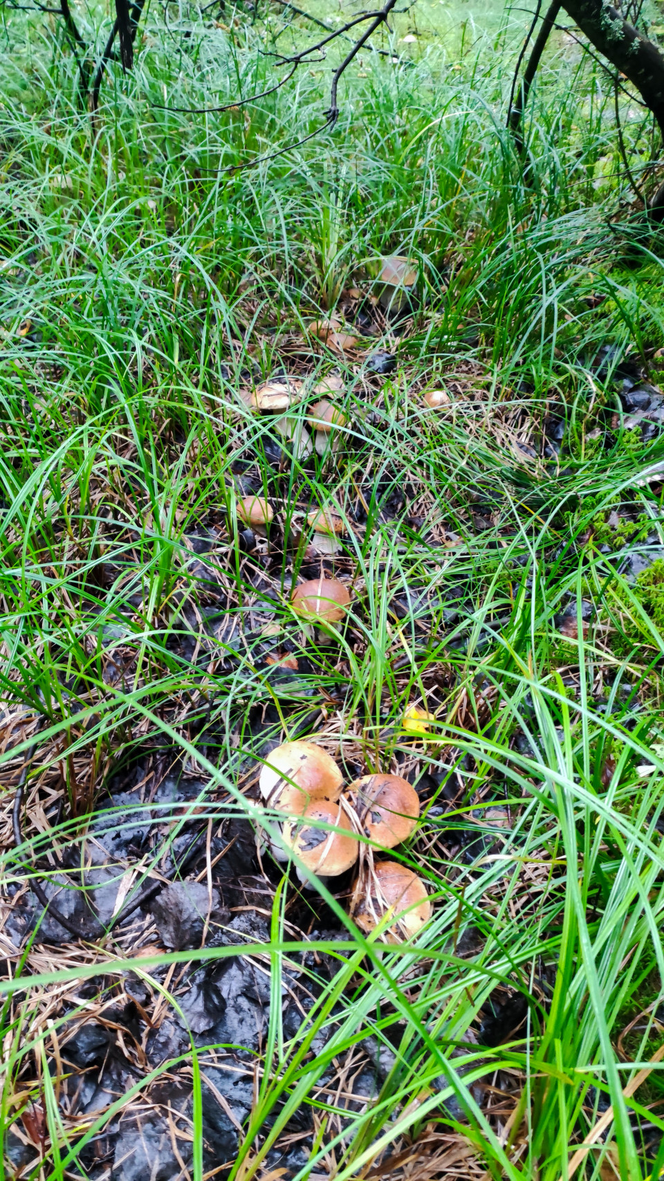 Группа подберезовиков в траве