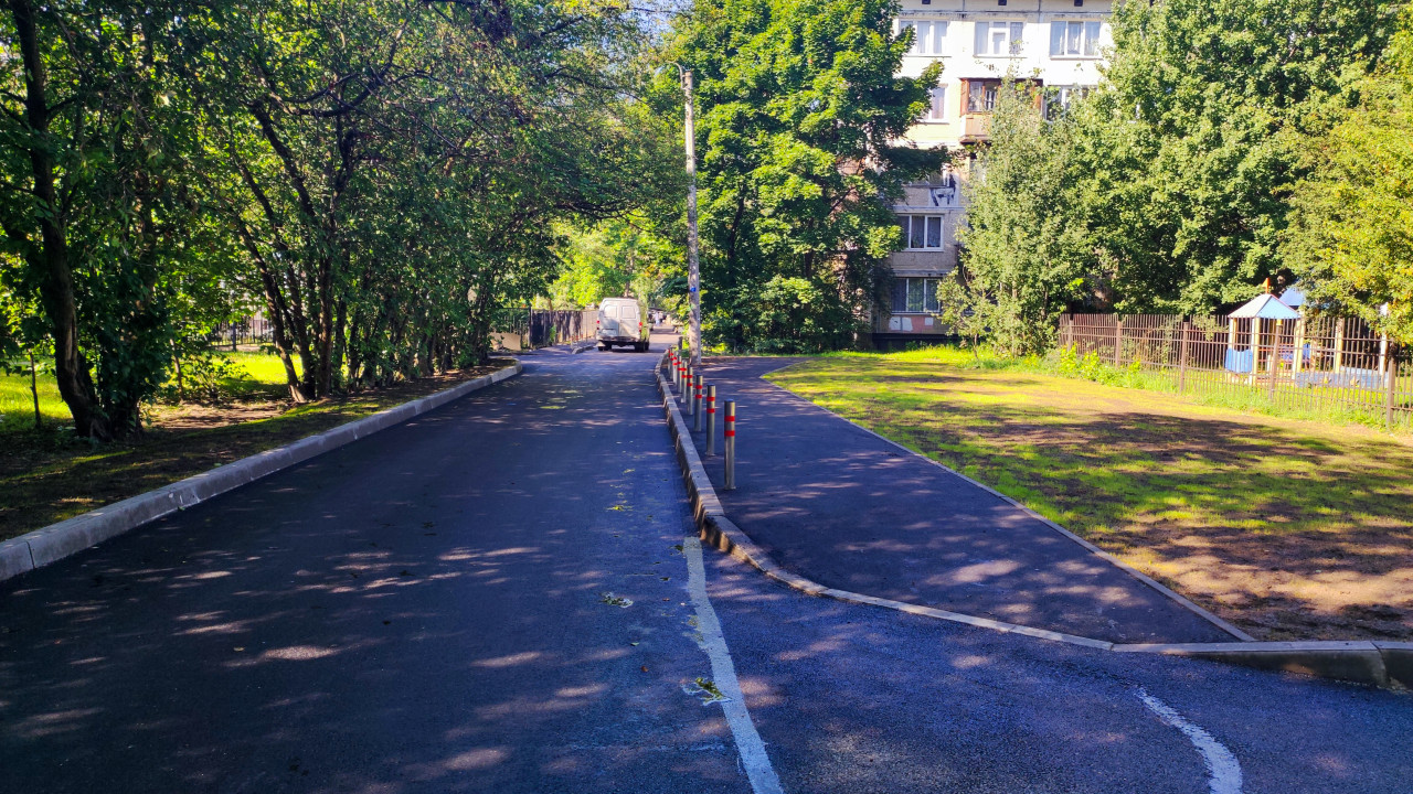 Обновленный асфальт во дворе жилого дома в тихом районе