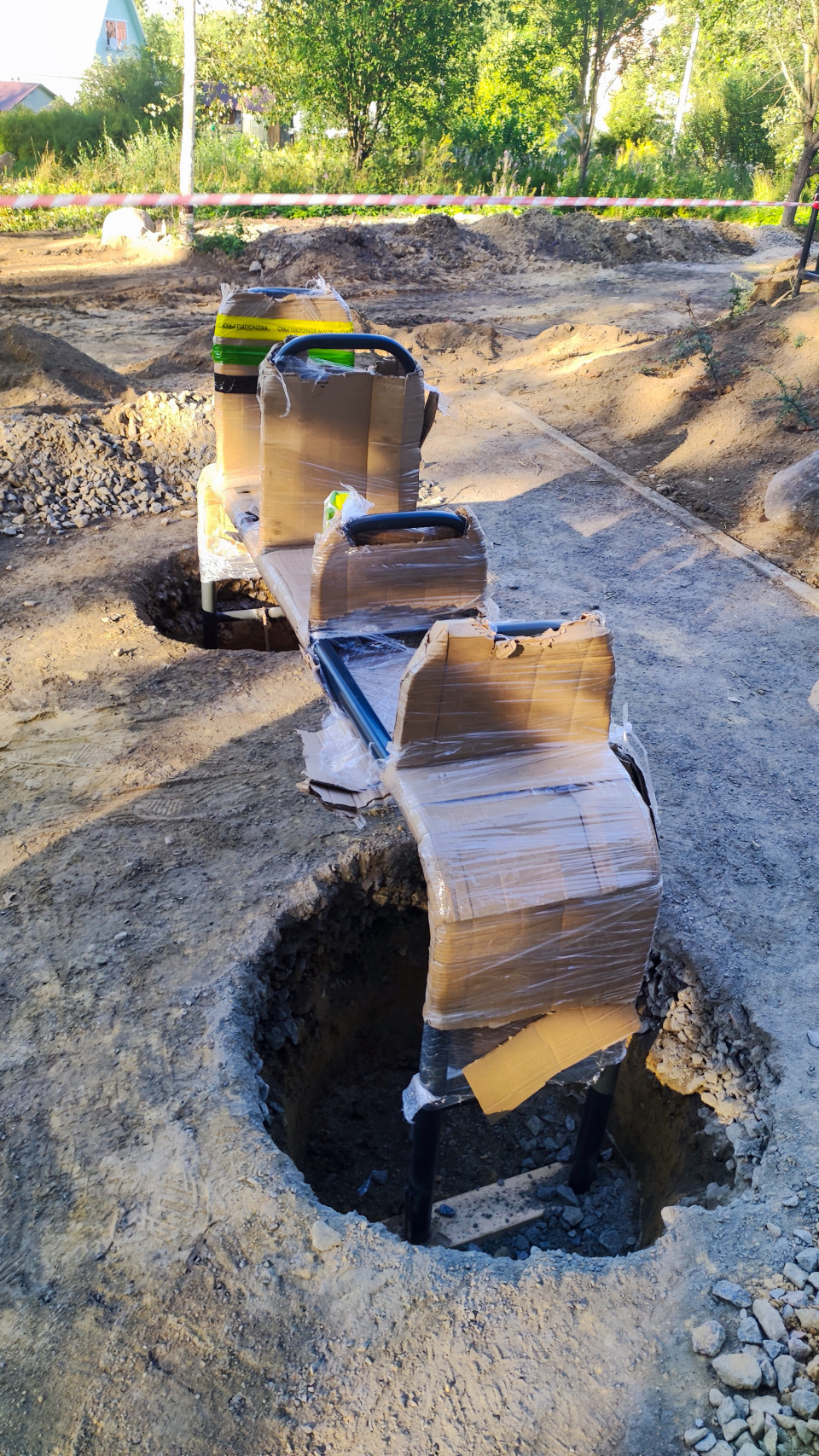 Прокладка инженерных коммуникаций во дворе многоквартирного дома
