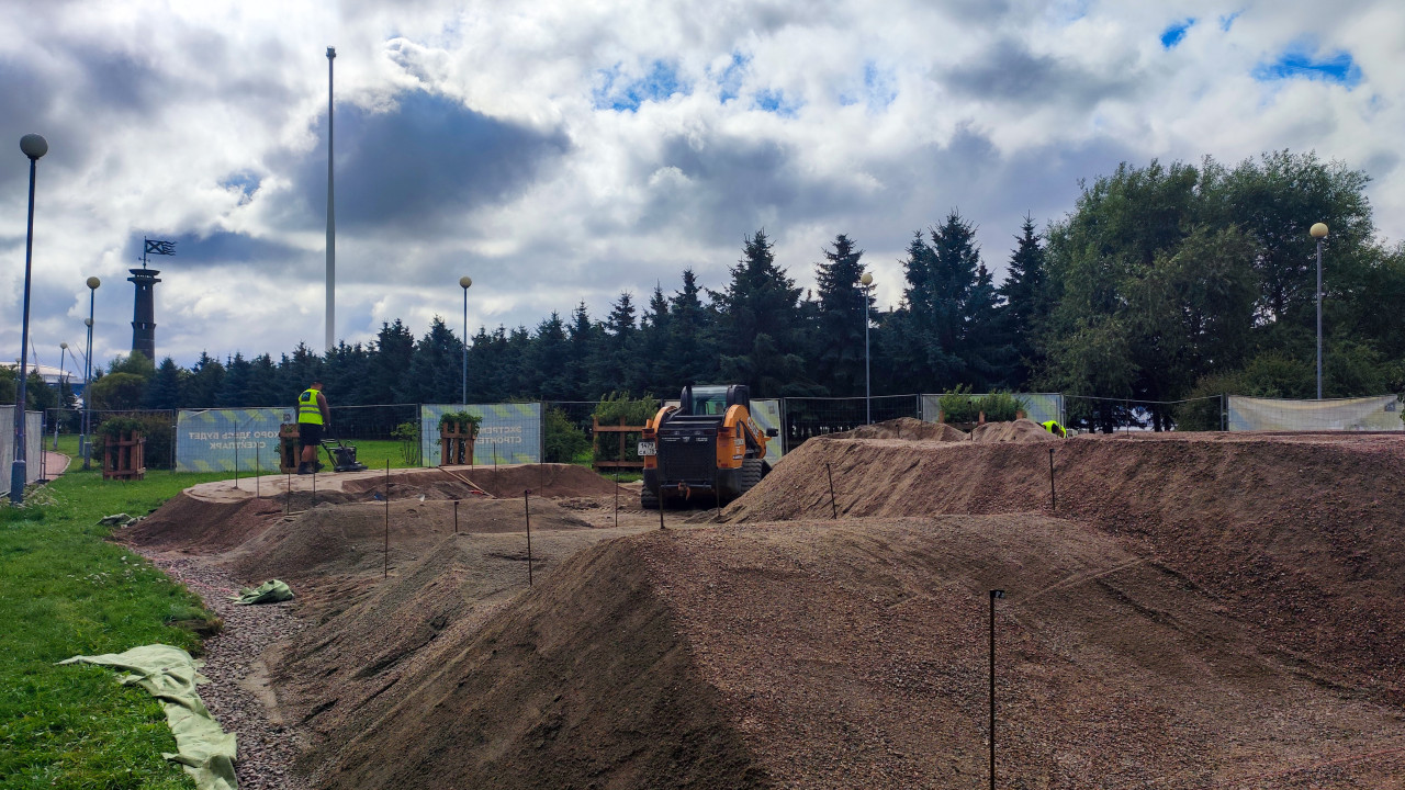 Строительство спортивной площадки с видом на Лахта Центр