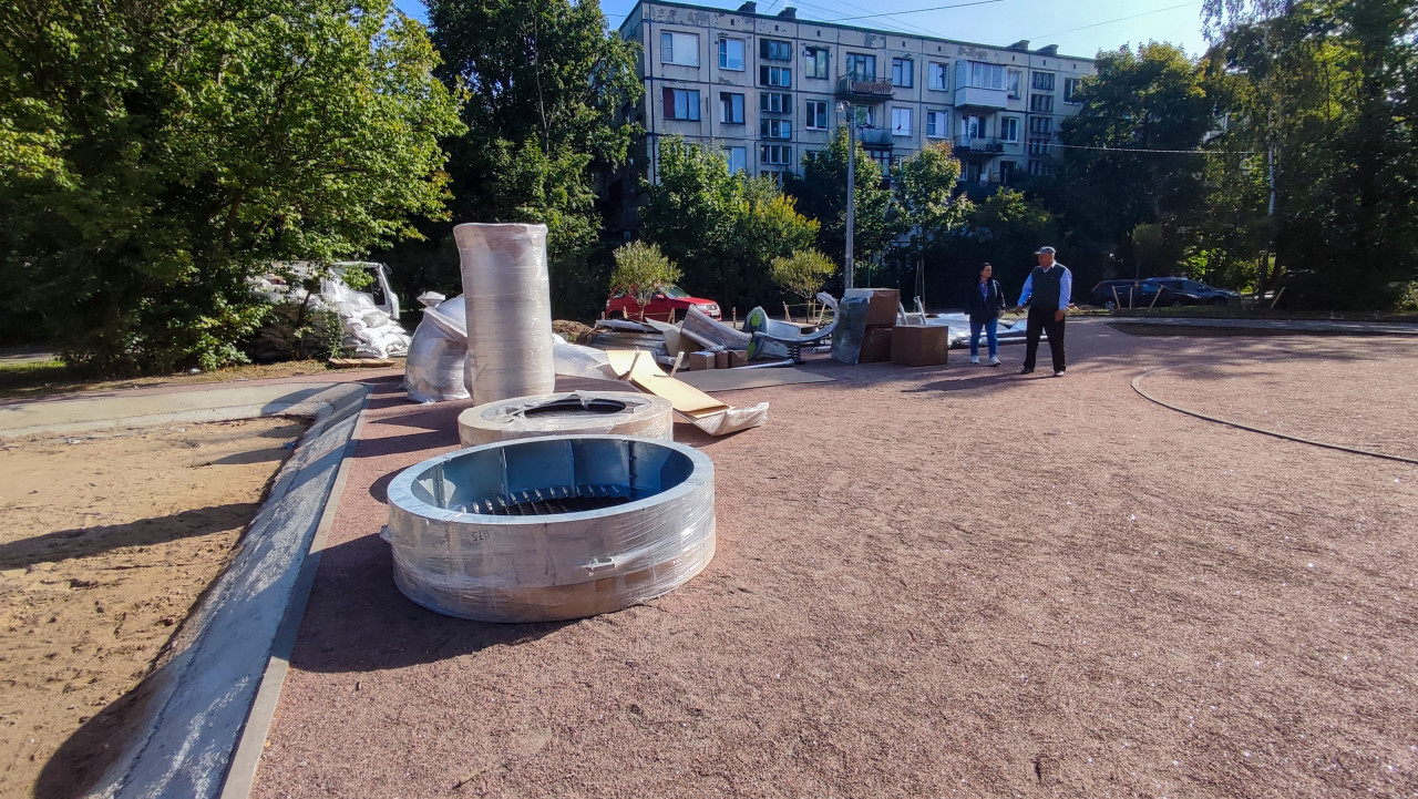 благоустройство благоустройство территории стройплощадка строительная площадка строительные работы строительство строительный участок детская площадка монтаж оборудование двор придомовая территория жилой дом многоквартирный дом процесс монтажа упаковка элементы конструкции металлические детали жители обсуждение городская среда озеленение благоустройство двора досуг детская инфраструктура установка игры территория Россия жилье оборудование для площадкиПохожие фотографии