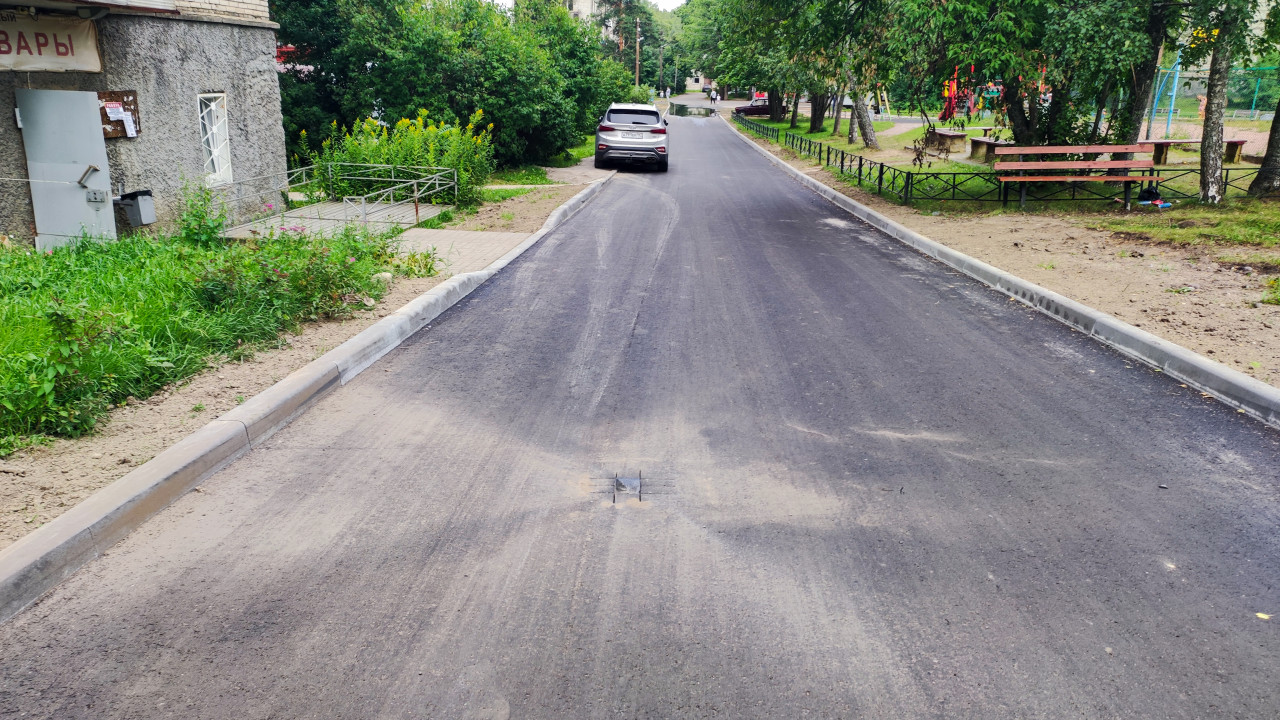 Новое асфальтовое покрытие на дворовой дороге с местом отбора проб