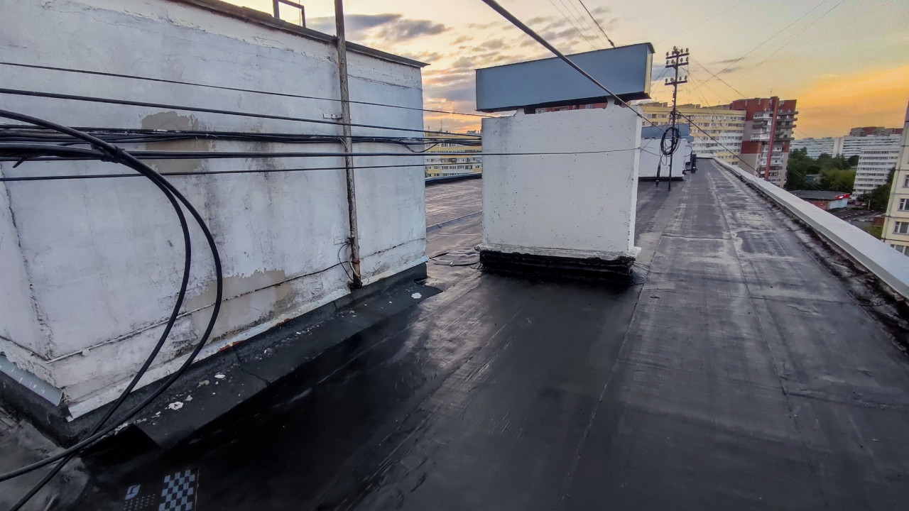 крыша ремонт крыши крыша здания износ кровельные работы ремонт кровли повреждения крыши кровля кровельное покрытие крыша дома плоская крыша многоквартирный дом жилой дом вентиляционная шахта кабели электропроводка коммуникации рулонный материал битумная кровля городская застройка жилые кварталы техобслуживание ЖКХ капитальный ремонт строительные работы здания СССР панельный дом архитектура инфраструктура города эксплуатация зданий инженерные сети благоустройство фасад крыша после ремонтаПохожие фотографии