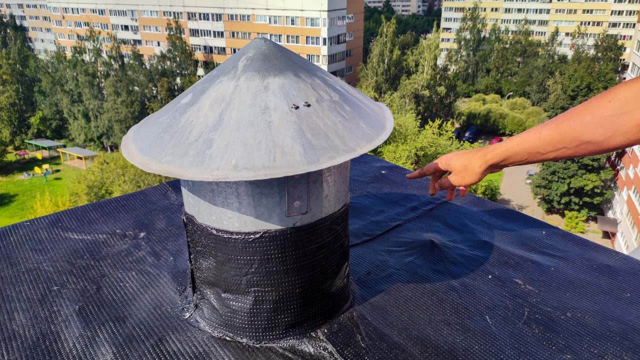 крыша ремонт крыши крыша здания износ кровельные работы ремонт кровли повреждения крыши кровля кровельное покрытие крыша дома вентиляция вентиляционный выход металлический колпак плоская крыша рулонное покрытие битум герметизация инженерные системы многоквартирный дом жилой дом эксплуатация зданий капитальный ремонт архитектура городская среда городская застройка жилой квартал двор благоустройство инженерные конструкции инженерные элементы обслуживание домов строительные работы эксплуатация домовПохожие фотографии