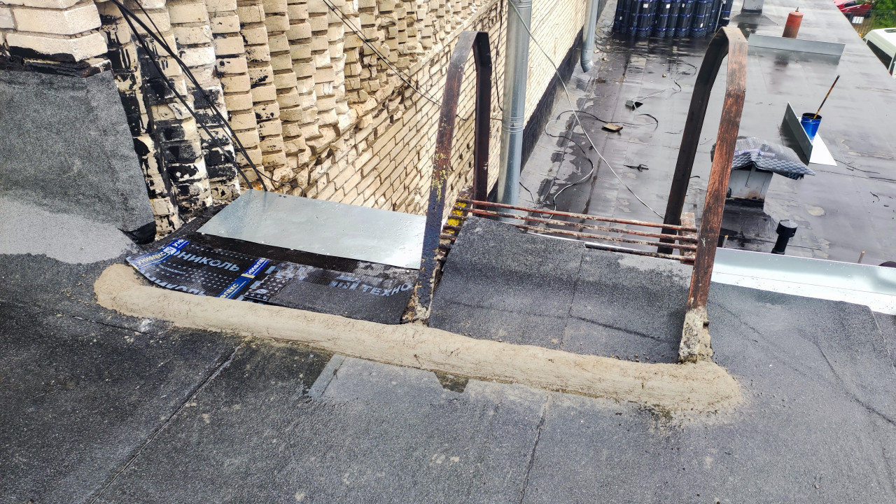крыша ремонт крыши крыша здания износ кровельные работы ремонт кровли повреждения крыши кровля кровельное покрытие крыша дома плоская крыша рулонное покрытие металлическая лестница примыкание крыши кирпичная стена парапет гидроизоляция мастика рулонный материал песчаная отмостка инженерные системы крыша после ремонта вентиляционные выходы инженерные конструкции эксплуатация зданий строительные технологии строительные материалы строительные работы инженерные коммуникации элементы фасада архитектура города урбанистика кровельные системы ремонтные процессы техническое обслуживаниеПохожие фотографии