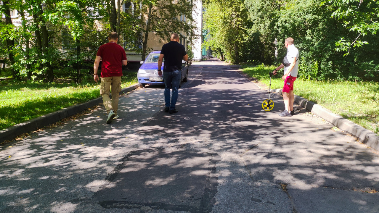 асфальт дорога замеры измерительное колесо курвиметр инженерные работы контроль качества обследование технический контроль инженеры придомовая территория благоустройство дорожные работы пешеходы автомобили жилые дома многоквартирный дом жилой квартал городской пейзаж транспорт придомовой участок строительный контроль измерительное оборудование жильё придомовое пространство городская среда строительные работы дворовая дорога инженерПохожие фотографии