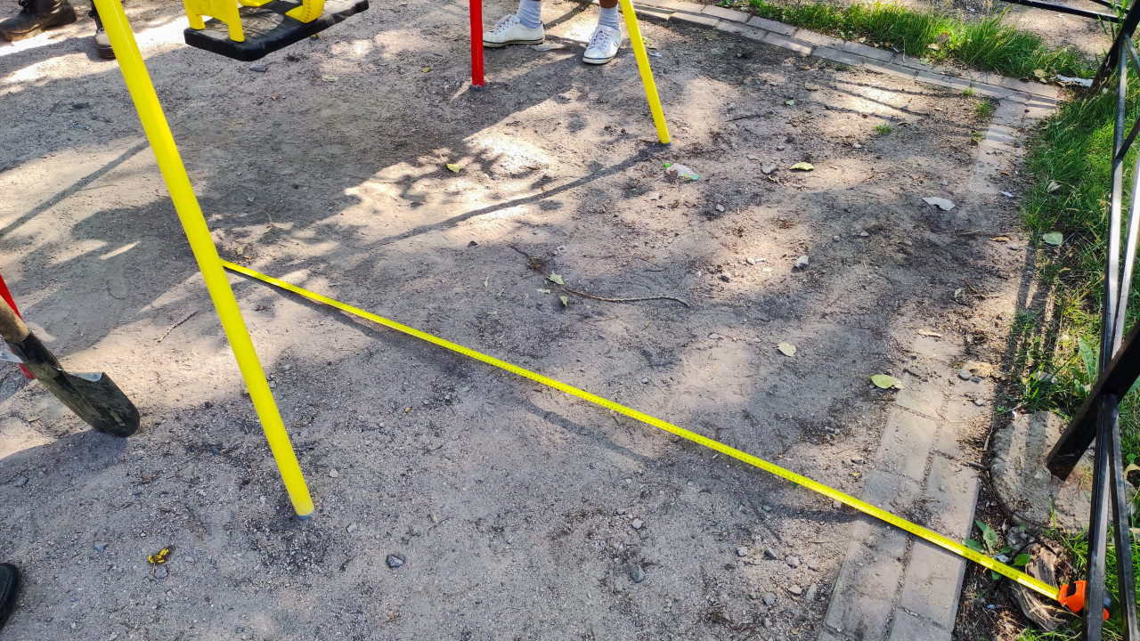 рулетка линейка измерение размеры сантиметры измерения измерительные работы обмеры замеры исследование качество контроль контроль качества проверка качества оценка качества экспертиза установка качелей контроль расстояния монтаж оборудования строительные замеры бордюр металлическая опора подготовка площадки контроль монтажа грунтовое покрытие строительные работы техника безопасности установка детского оборудования проверка размеров монтаж детской площадки строительный процесс дворовая территория установка опор замеры на площадке проектирование измерительные инструменты благоустройство двора строительные нормы монтажные работыПохожие фотографии