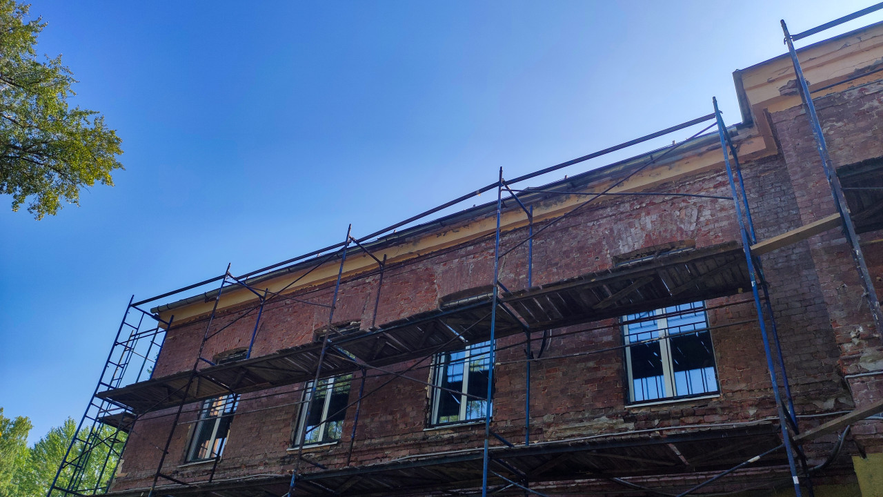 здание фасад ремонт реконструкция реставрация строительные работы инженерные работы строительный процесс двухэтажное здание капитальный ремонт утепление кирпичное здание строительные леса ремонт фасада архитектурные элементы старое здание арочные окна восстановление здания реставрация фасада здание в ремонте архитектура кирпичная кладка строительные конструкции ремонт здания строительный объект строительный инвентарь ремонт фасада здания восстановление архитектуры реставрация зданий строительные технологии реконструкция фасадаПохожие фотографии