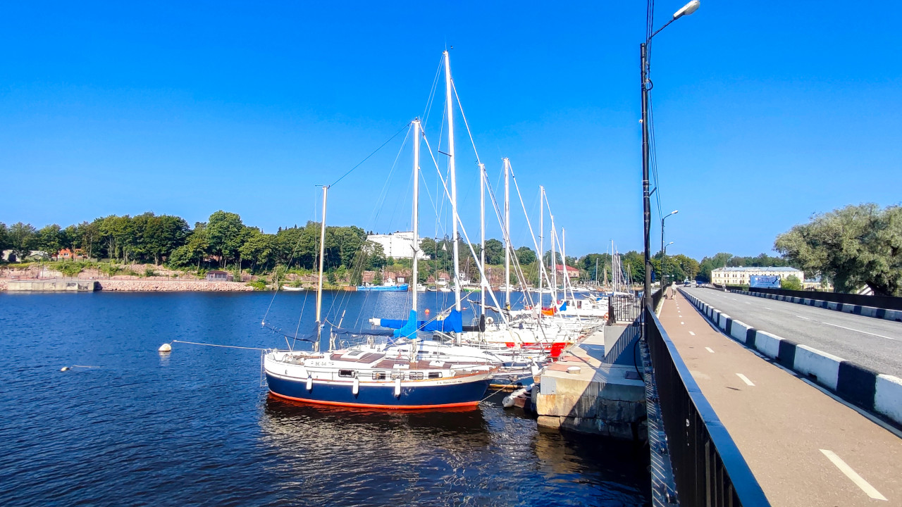 яхты парусные суда причал набережная акватория лодки катера городской пейзаж водный транспорт яхтенный порт судоходство мост автомобильная дорога тротуар парусники инфраструктура городская среда берег белое здание деревья пришвартованные суда летний день городской транспорт водоём отдых у воды причальная зонаПохожие фотографии