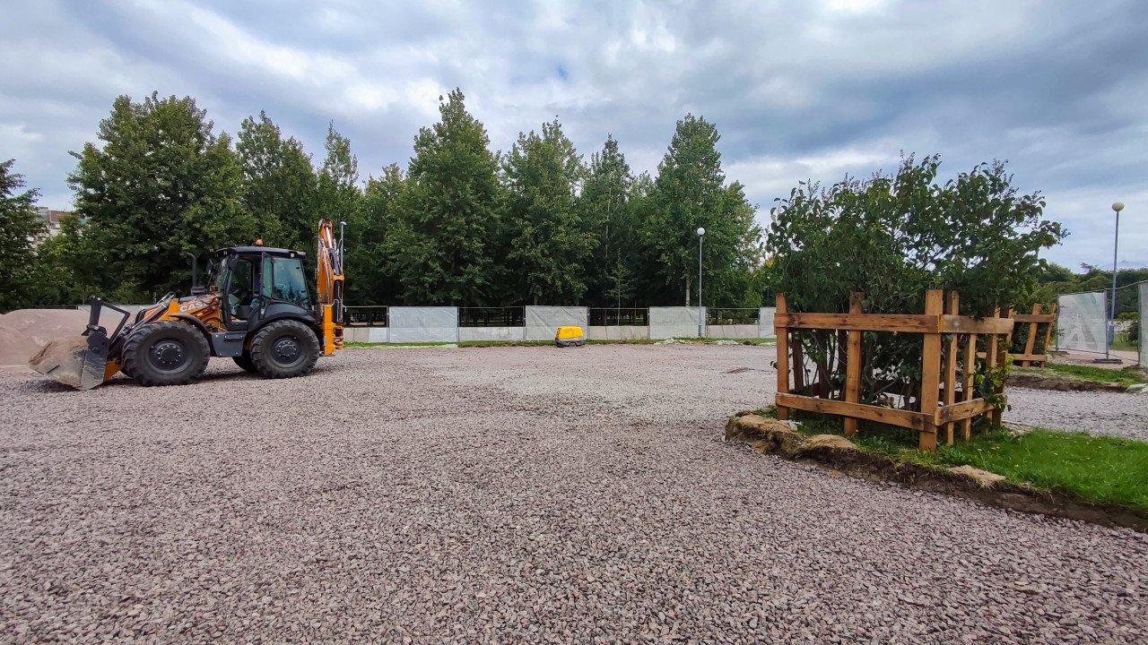 строительная площадка стройка стройплощадка строительный участок строительство строительные работы экскаватор техника площадка щебень основание благоустройство инженерные системы подготовка территории парк кустарники зелёные насаждения сохранение зелени строительные материалы урбанистика строительный процесс работы инфраструктура подготовка основания дорожное строительство общественное пространство парковые работы реконструкция техника на площадке благоустройство города строительная техника CASEПохожие фотографии