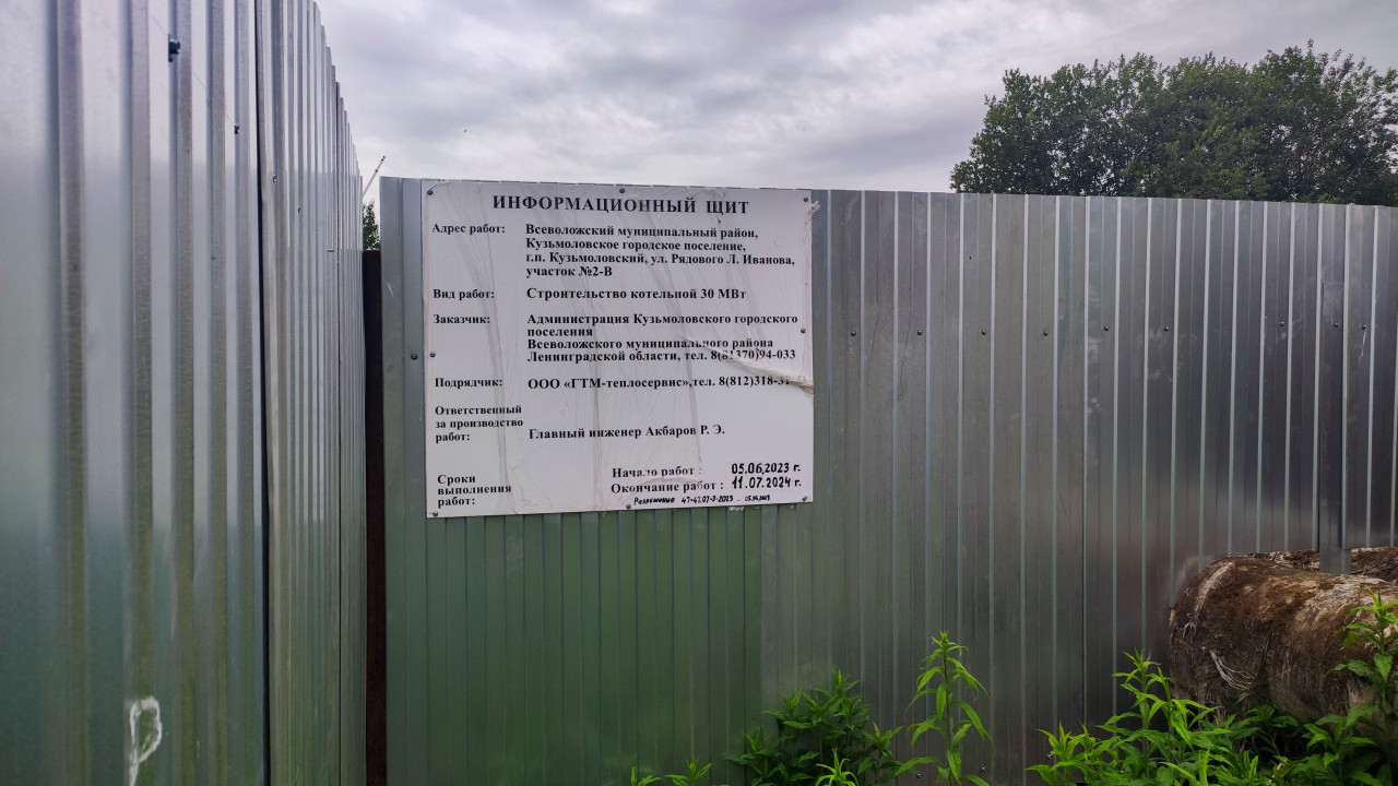 строительная площадка стройка стройплощадка строительный участок строительство строительные работы информационный щит строительный объект котельная Ленинградская область Кузьмоловский Всеволожский район проект заказчик подрядчик сроки строительства администрация ограждение забор табличка техническая документация инженер ЖКХ энергетика коммунальное хозяйство строительство котельной городская инфраструктура документы на стройке работы на объекте инженерные проекты строительные технологии строительство энергетикиПохожие фотографии