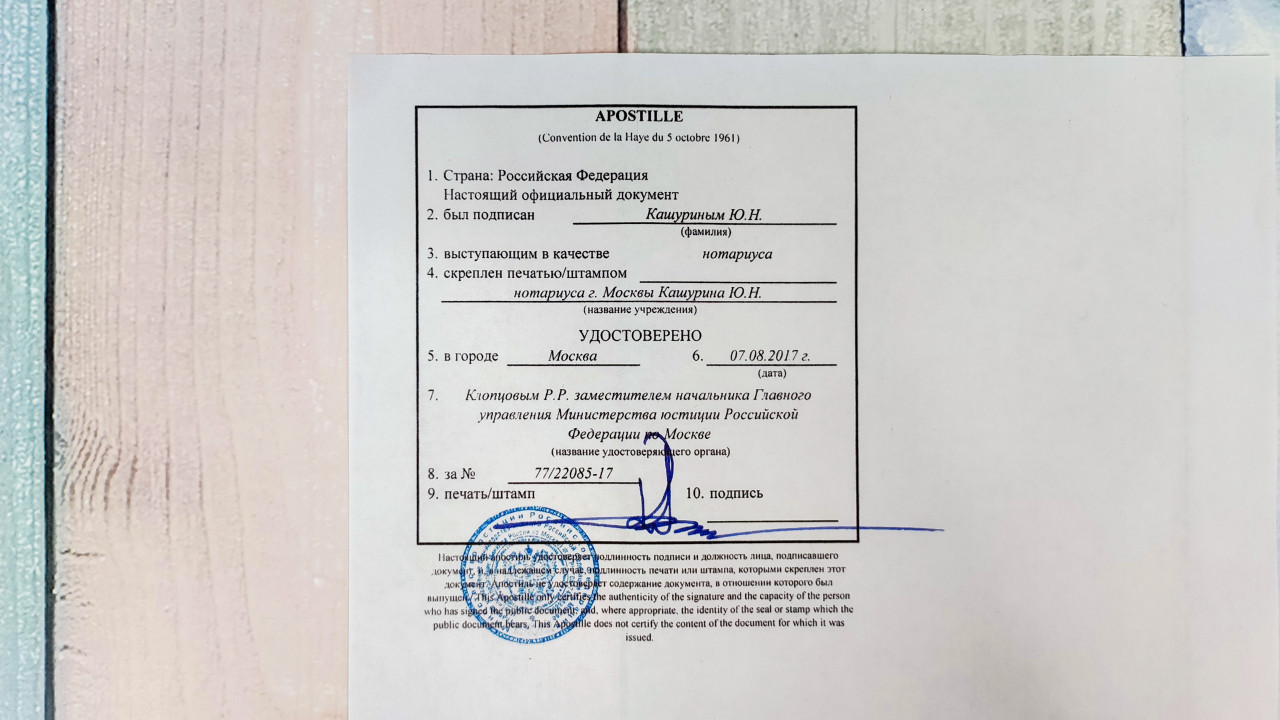 Российский апостиль с нотариальной печатью