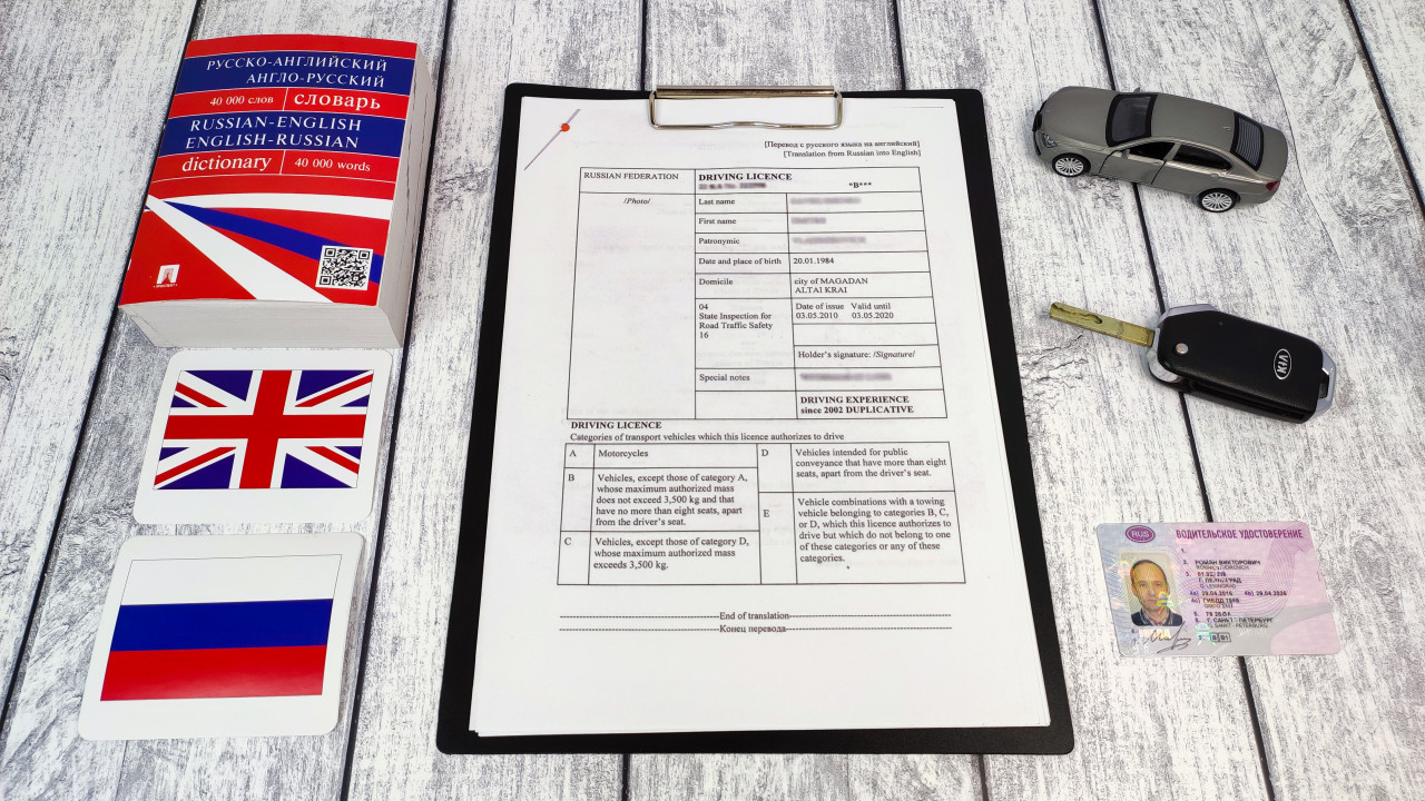 Перевод водительского удостоверения с документами и автомобильным ключом