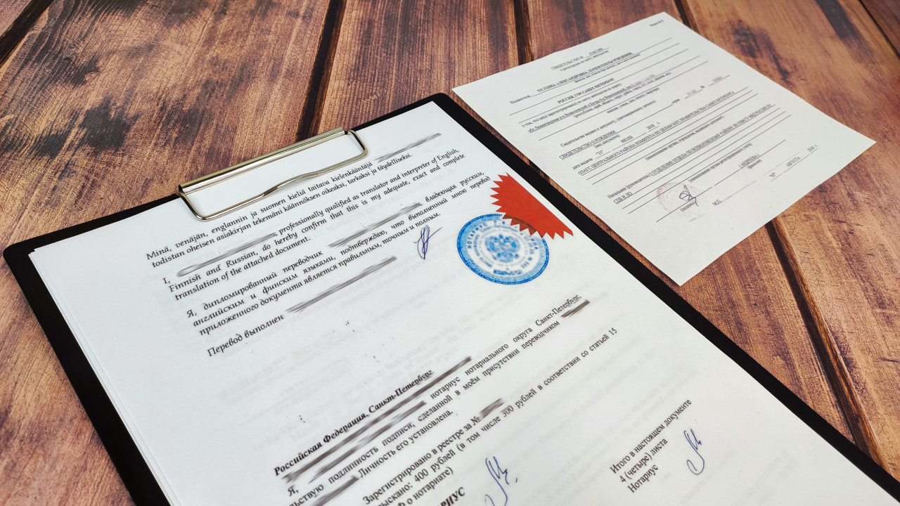 Перевод украинского диплома на русский язык на планшете с зажимом