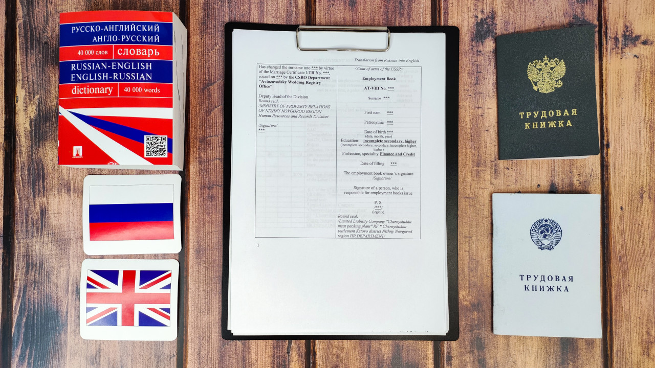 нотариальный перевод перевод документов юридический перевод бюро переводов переводчик легализация документов удостоверение перевода работа переводчика подтверждение перевода трудовая книжка СССР Россия перевод на английский трудовой стаж кадровые документы официальные документы словарь флаг России флаг Великобритании международные документы нотариус нотариальные услуги нотариальное заверение трудовая история перевод трудовой книжки архив документов HR документы международное трудоустройство нотариальное оформление подтверждение опыта перевод официальных бумагПохожие фотографии