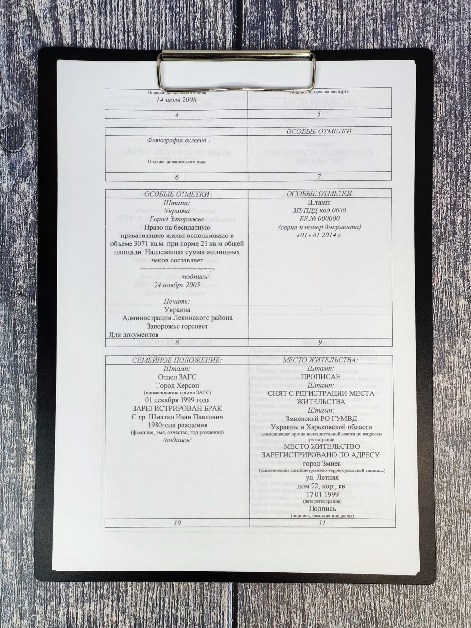 Перевод украинского паспорта с отметками о семейном положении и регистрации брака