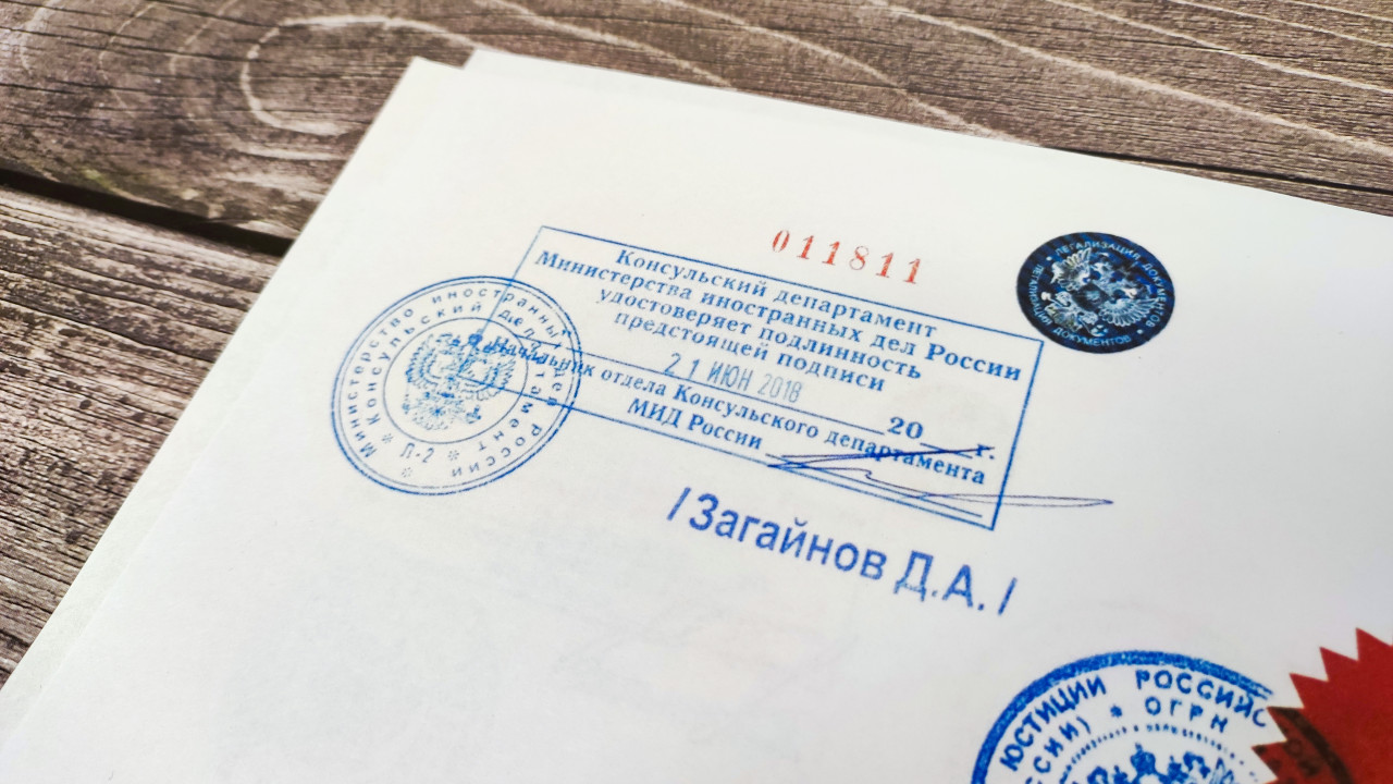 Консульский штамп Министерства иностранных дел России на официальном документе