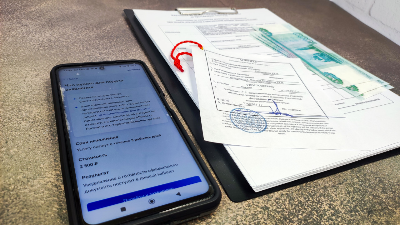 Апостиль Российской Федерации и смартфон с порталом Госуслуги