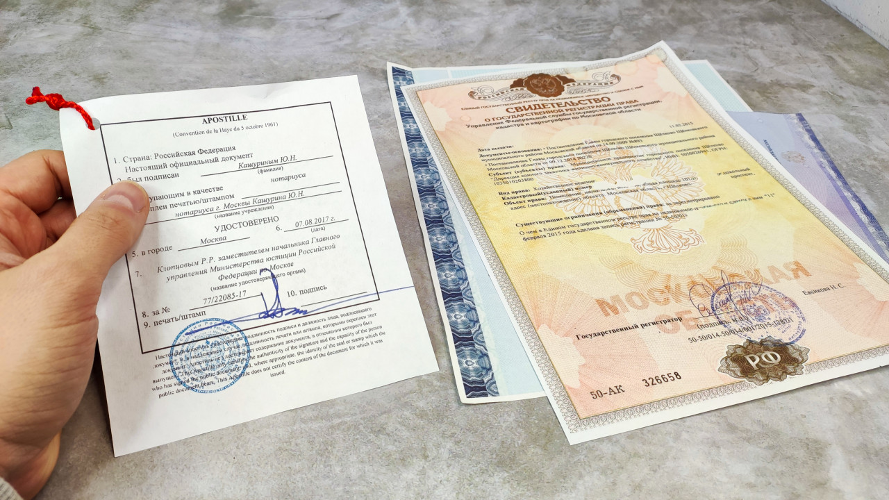 Свидетельство о регистрации права и нотариальный перевод с печатями