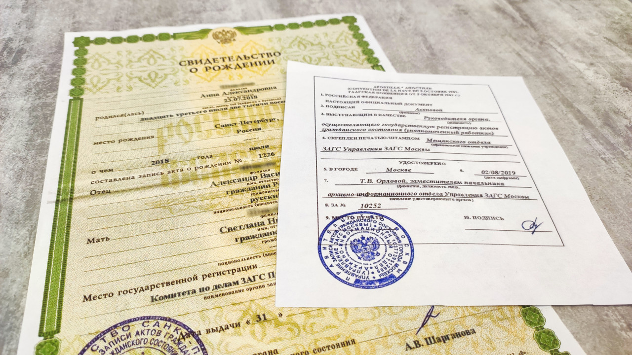 Свидетельство о рождении и апостиль, оформленные для международного использования